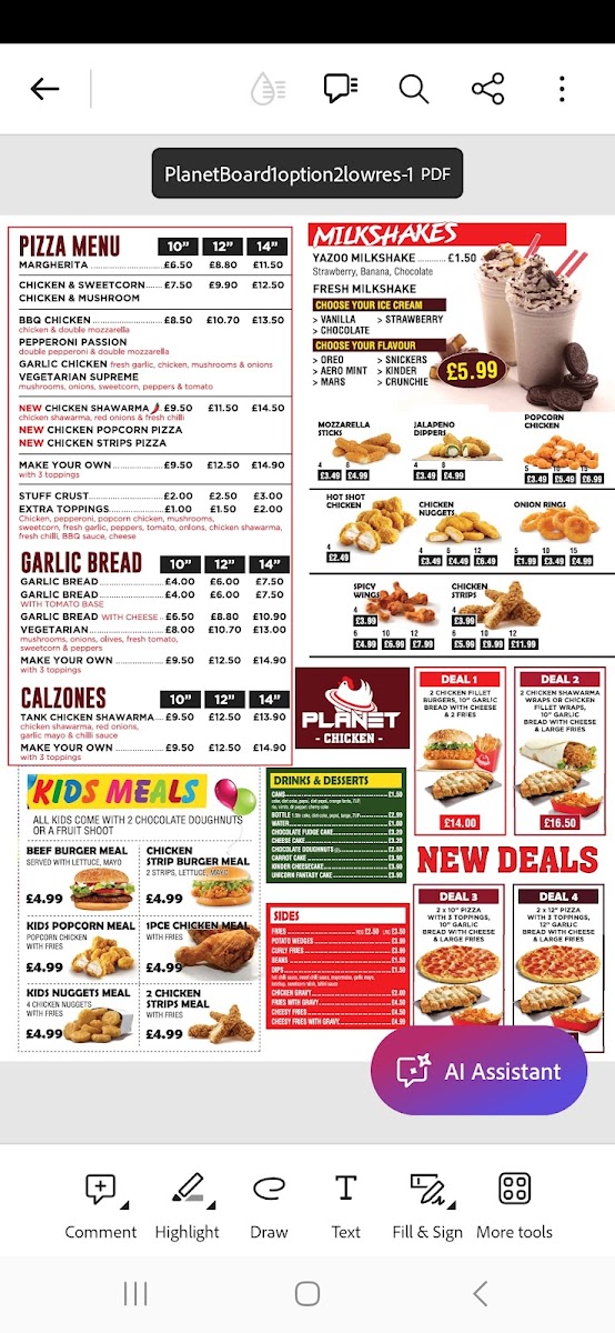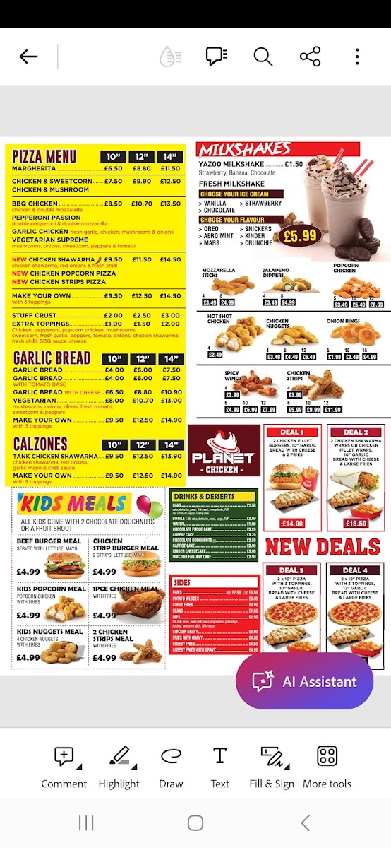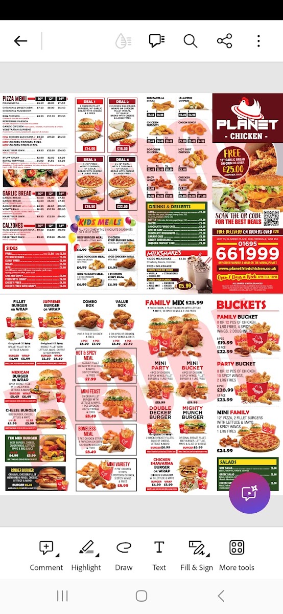 Welcome to Planet Chicken Skelmersdale, an exciting takeout destination located at Unit 10 Gladden Pl. This culinary haven offers a diverse menu that celebrates the joy of fried chicken and tantalizing sides. With favorites like the family bucket and BBQ wings, it's a hit among families and friends alike, ensuring satisfaction with every bite. Customers rave about the grilled chicken, known for its amazing flavor and quick delivery. The menu also caters to younger appetites with kids meals, including beef burgers and nuggets at affordable prices. For a sweet finish, don't miss the indulgent Yazoo milkshakes.